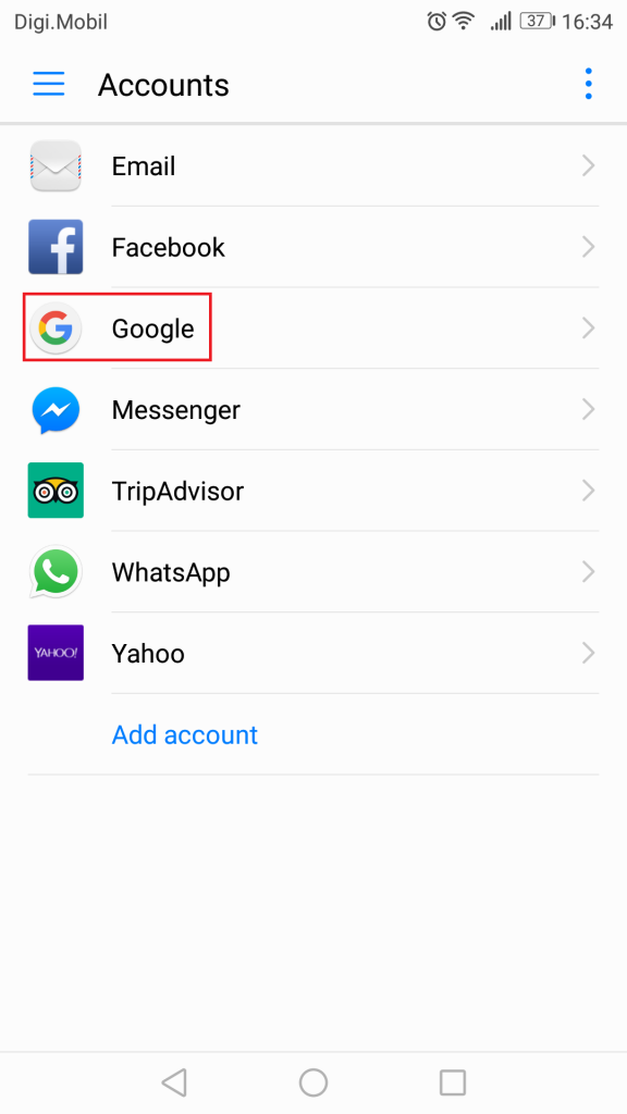 3. Restart your device, go back to Settings > Accounts and tap the “+” icon.