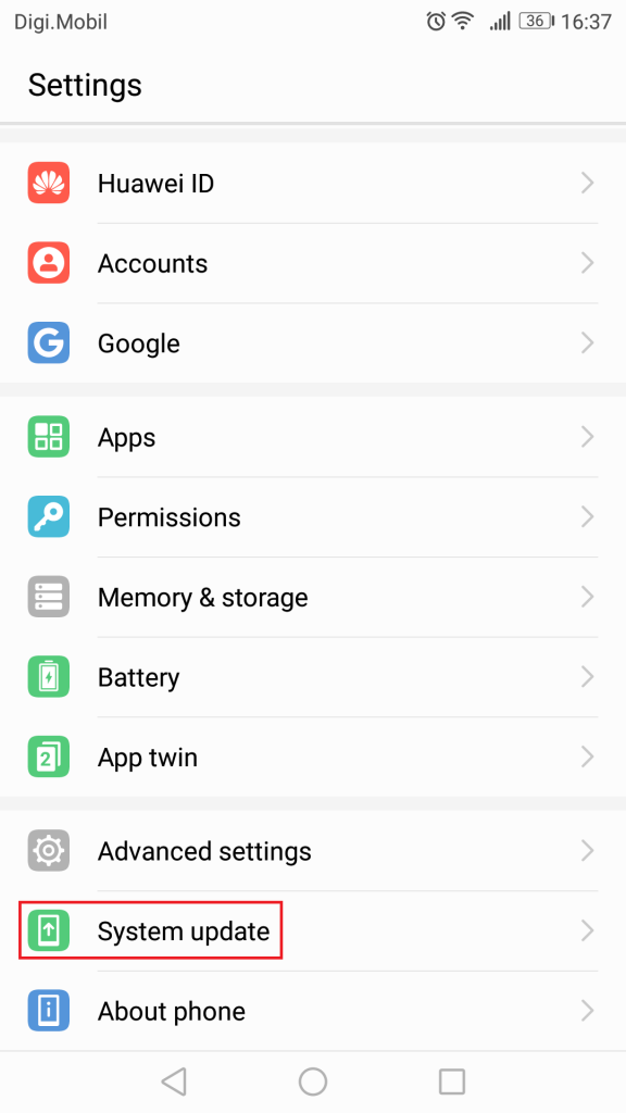 Note: On some Android devices System update can be found inside the About or About Device tab.