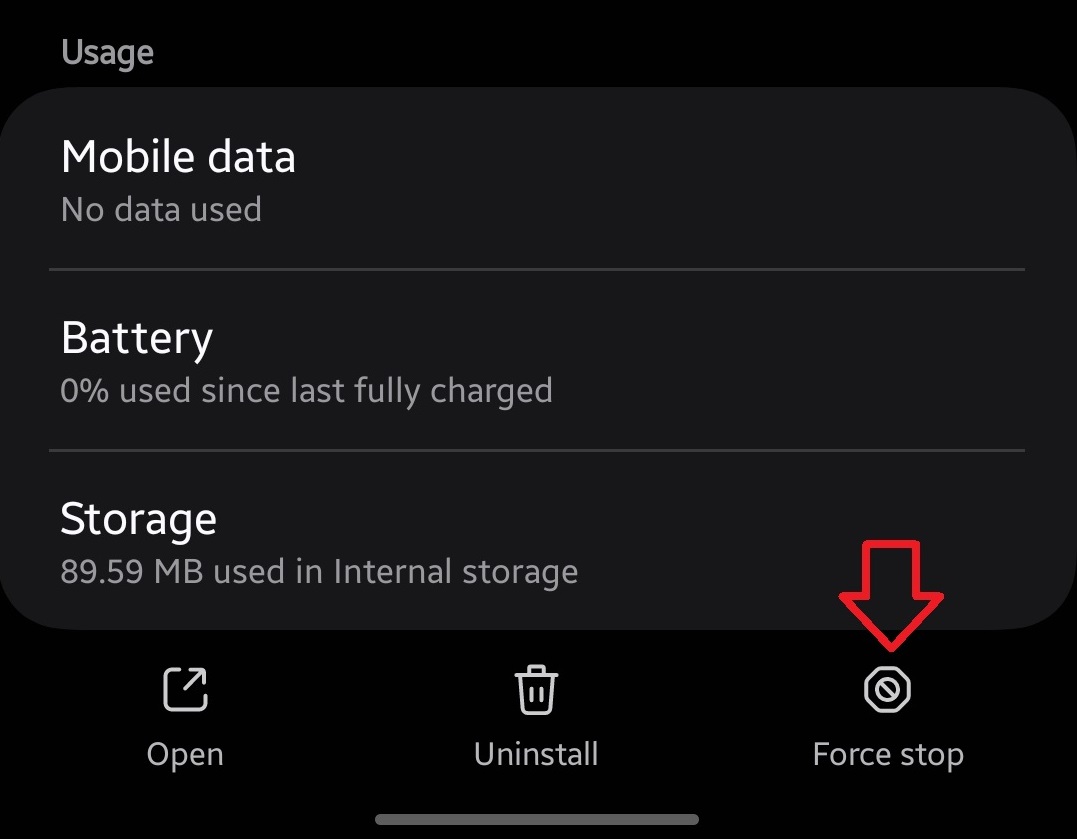 - Tap Force Stop to immediately close all running Telegram processes.