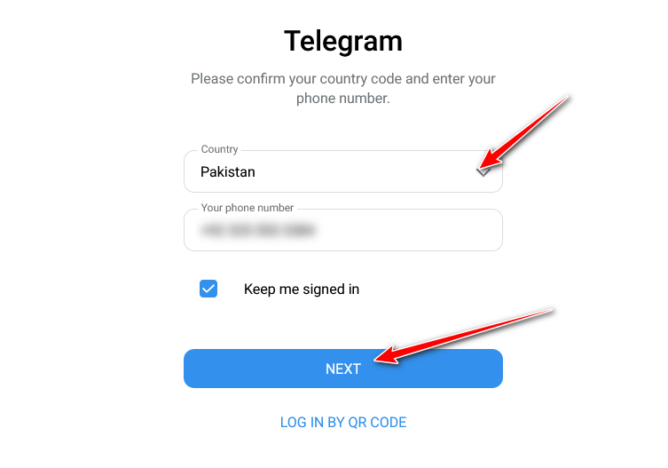 - Open the Telegram app and enter your phone number in international format.
