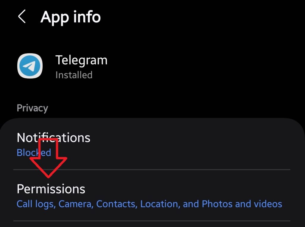 - Tap Permissions to view Telegram’s current access settings.