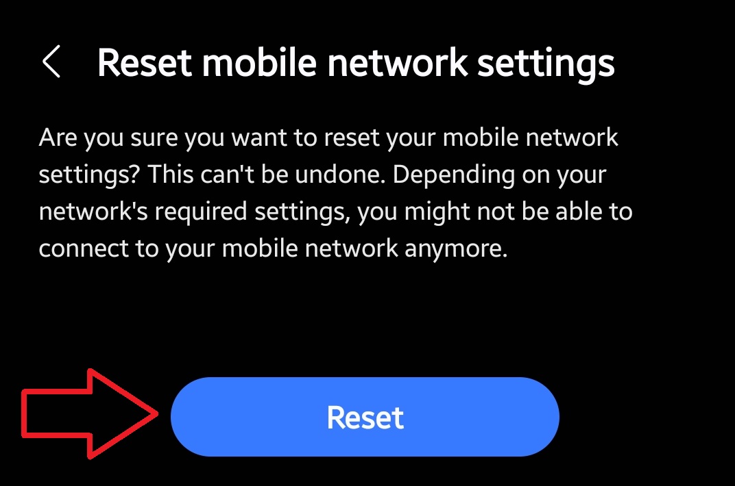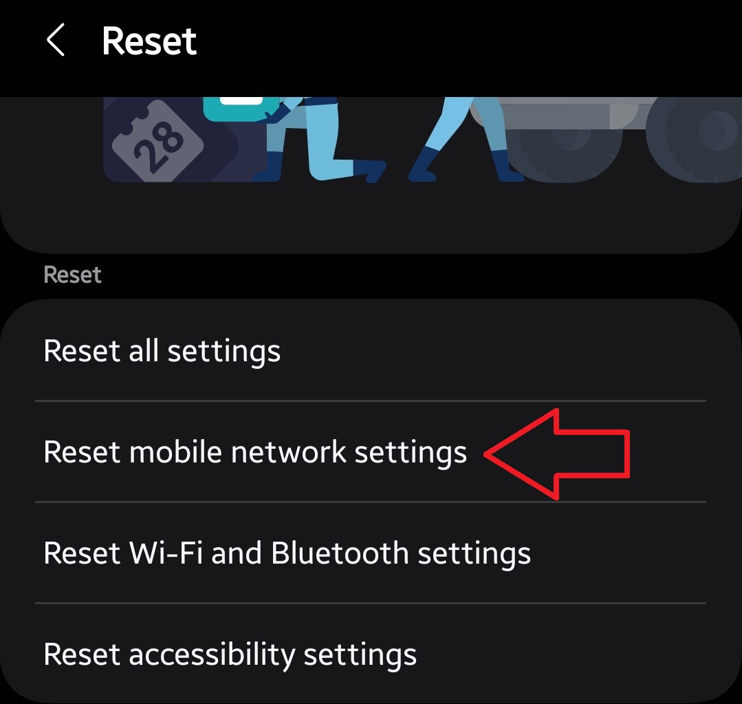 - In the General Management menu, go to Reset › Reset mobile network settings.