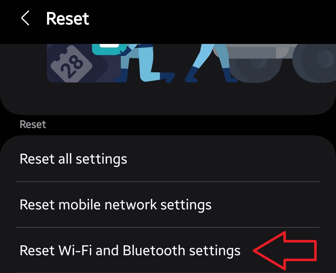 - (Optional) If you’re also facing persistent Wi-Fi or Bluetooth issues, go back to the Reset menu and select Reset Wi-Fi/Bluetooth settings.