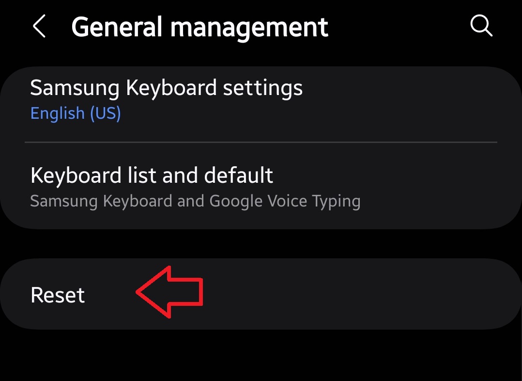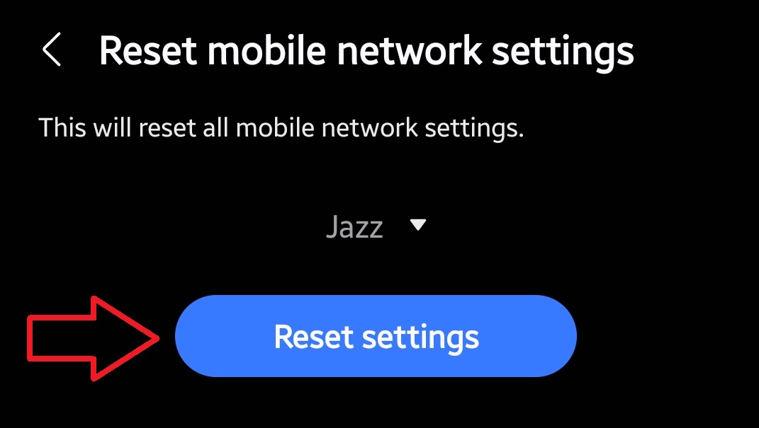 - In the General Management menu, go to Reset › Reset mobile network settings.