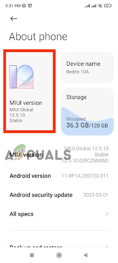 - Tap on the MIUI Version box, which is available at the beginning of the new window.