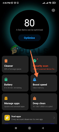 Taping on the Boost Speed option - It will detect the cache; therefore, tap the Boost Speed option at the bottom of your screen.