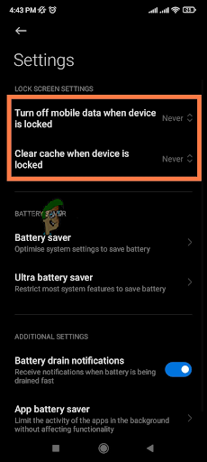 Tap on the ‘Turn Off Mobile Data When Device is Locked’ and ‘Clear Cache When Device is Locked’ option - Select the Five Minutes option from the drop-down menu.