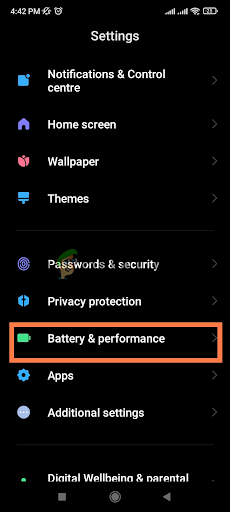 Go to the Battery and Performance options - Tap on the Settings icon at the top right corner.