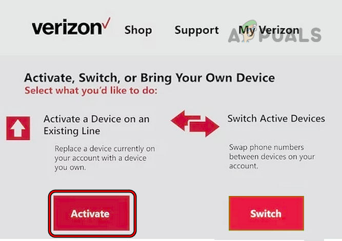 - Then select Activate or Switch Device and click on Activate on An Existing Line.