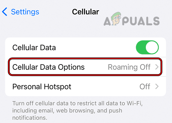 If any of your phone’s cellular data options are not properly configured or corrupt, then that could result in the provisioning error on Verizon. In such a case, disabling and enabling features of the cellular data options may clear the error at hand. For elucidation, we will go through the process of disabling/enabling features of the cellular data options for an iPhone.