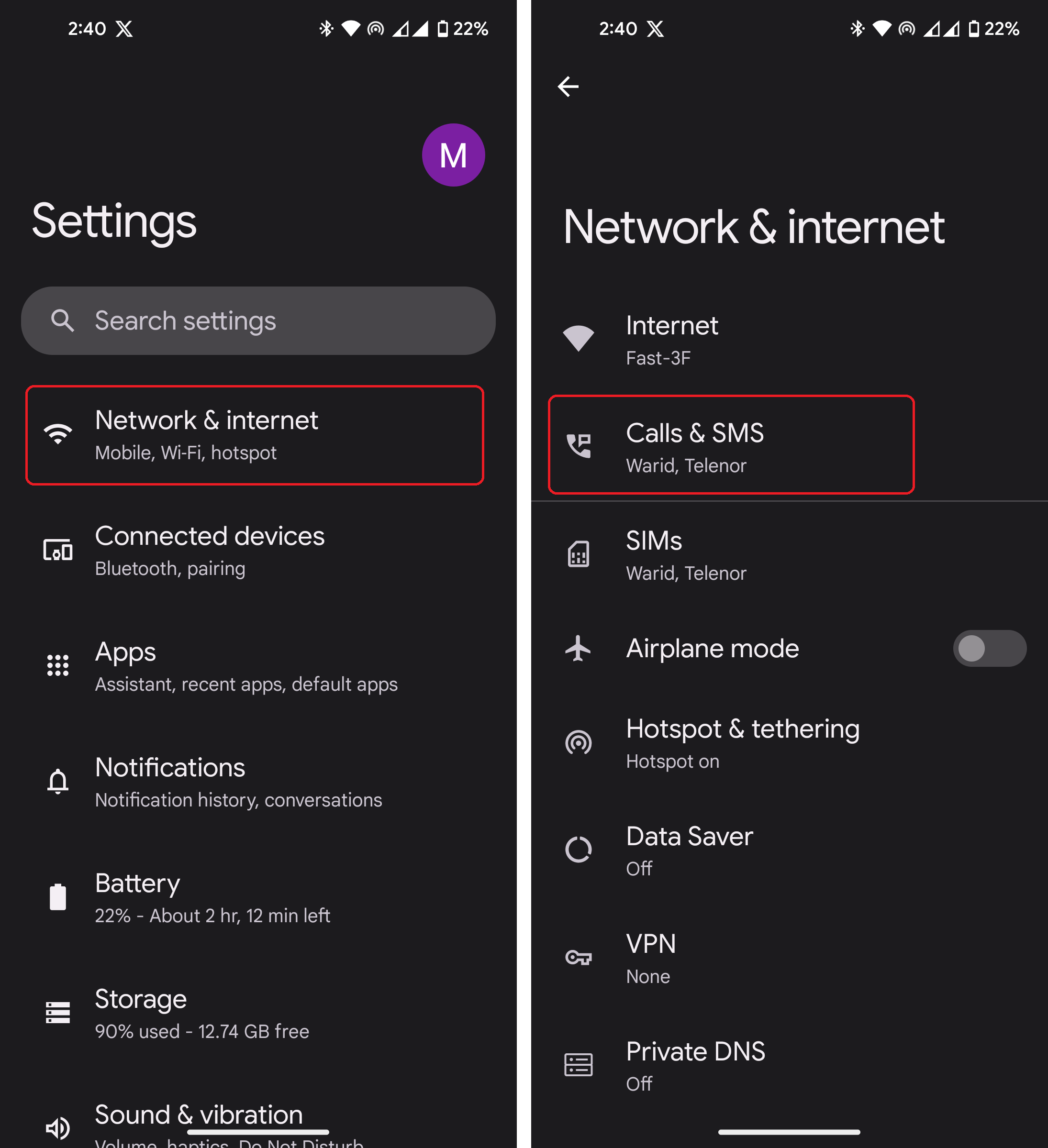 If Airplane Mode is enabled, your phone will not communicate with the cellular towers in your region. To check if Airplane Mode is enabled, swipe down from the notification pane and long-press the airplane icon. If the toggle is “On,” turn it off and try making a call again.