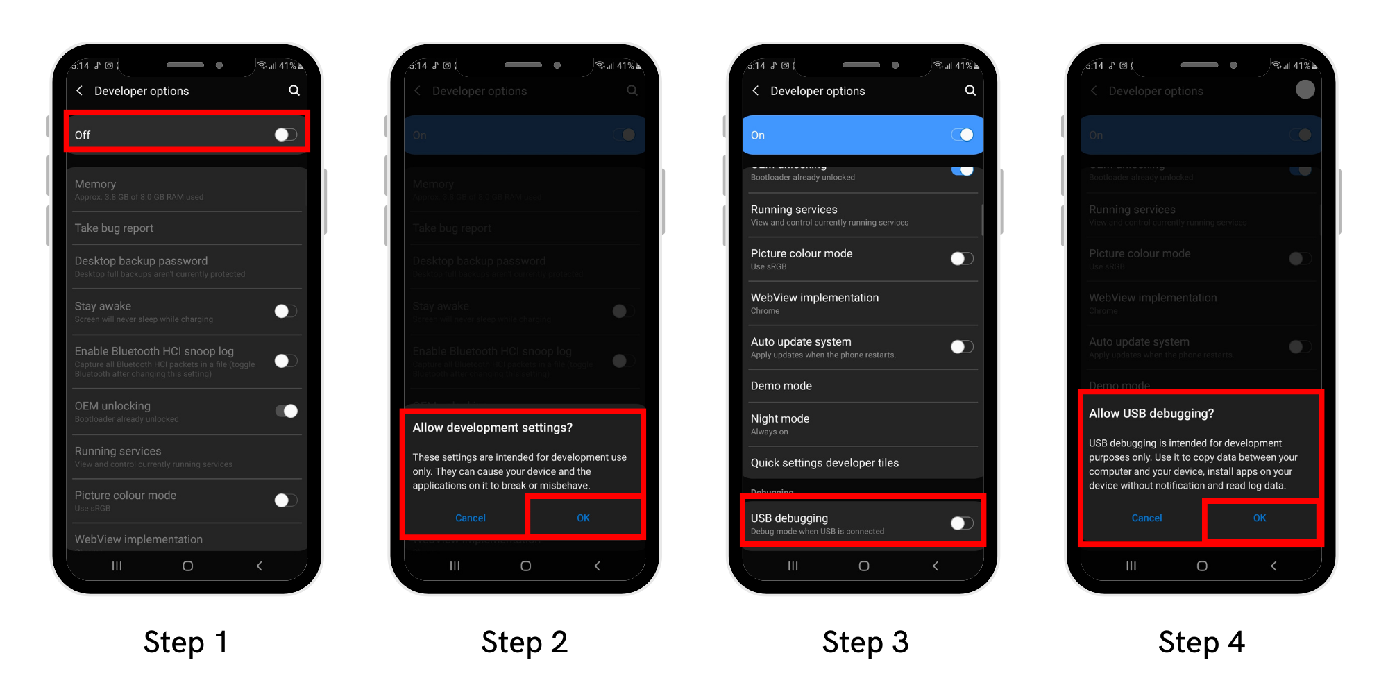 Enabling Developer Options and USB Debugging - Connect your phone with your computer.