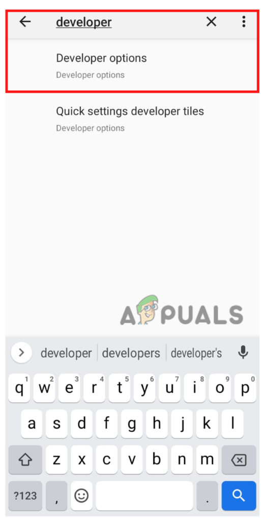 3. Go back to the Settings menu and search for the Developer option in the search bar. Open Developer options