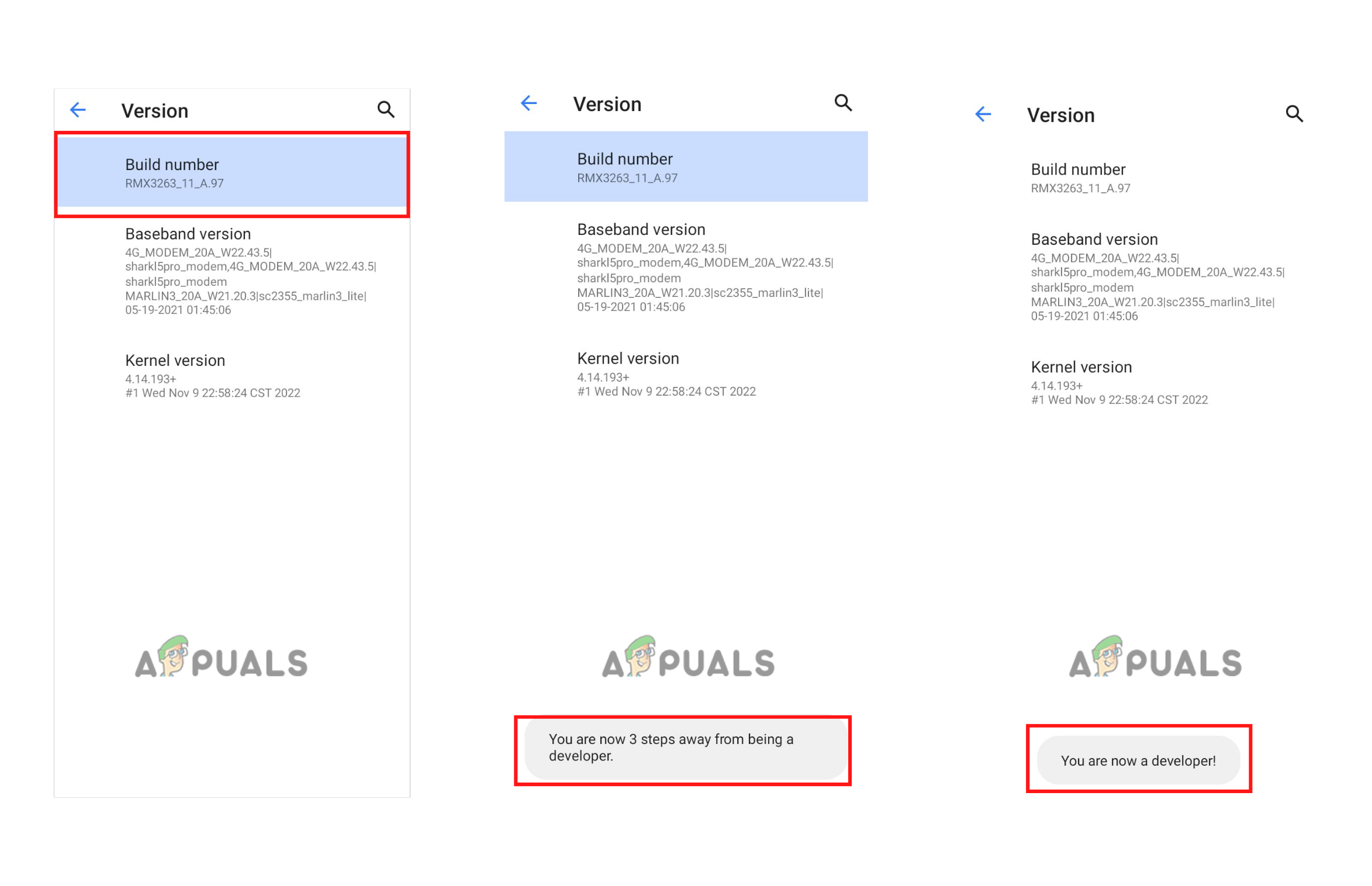 2. Tap on Build Number repeatedly (usually 7 times) until a message appears that says You are now a developer. Tap on Build number 7 times