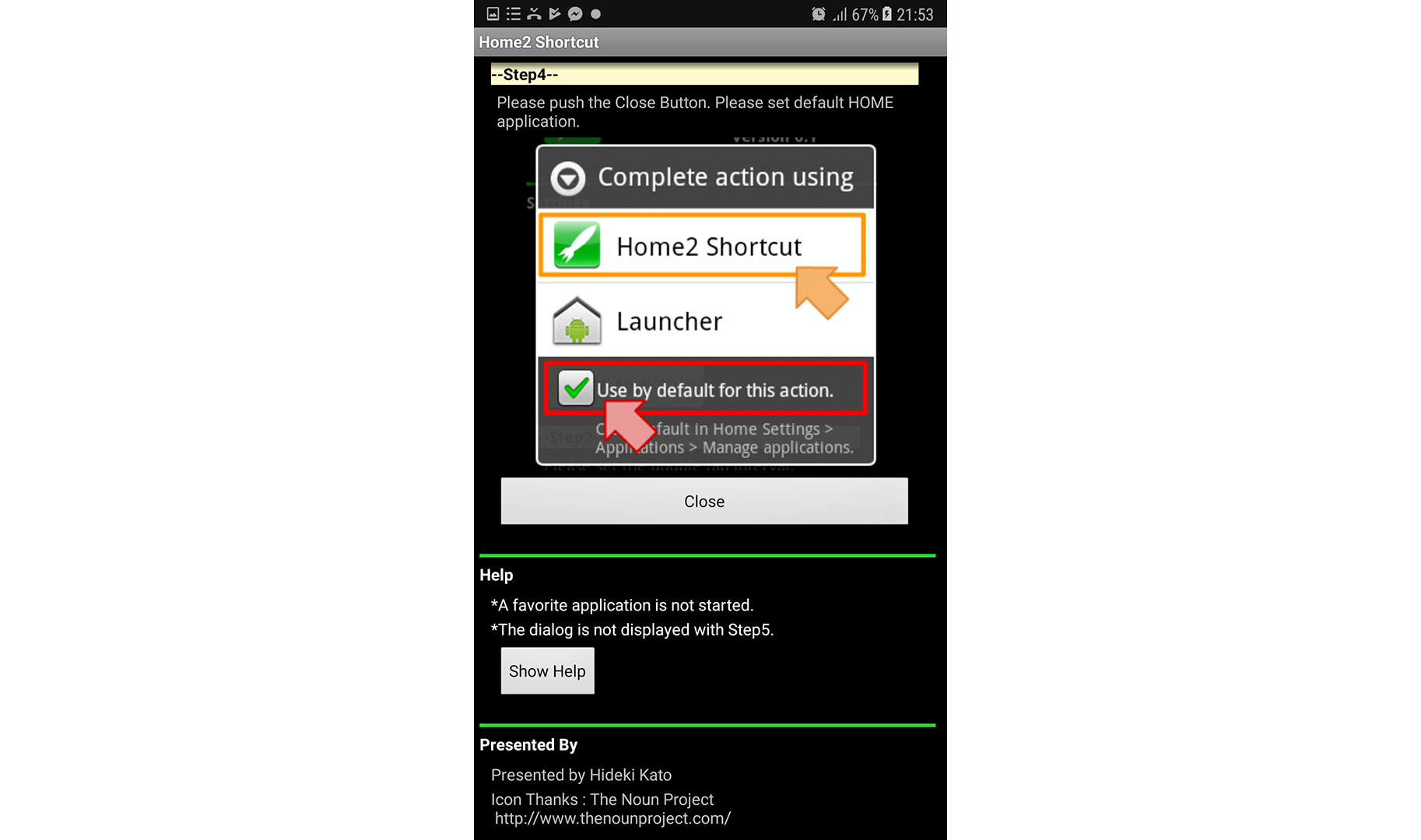 4. Press the home button to proceed to the last step, where you’ll be asked which launcher you want to use. Here, select Home2 Shortcut and tap “Always.” If you ever want to reset this setting, you can do so by clearing the app defaults in your Android settings.