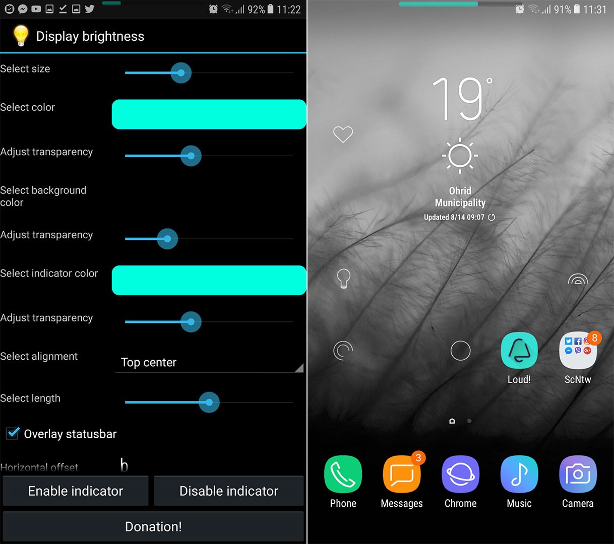 After you’ve finished customizing the slider the way you like, you can close the app and test your new brightness control by sliding your finger where you placed it. Personally, I prefer putting it in the middle of the status bar for easy access.