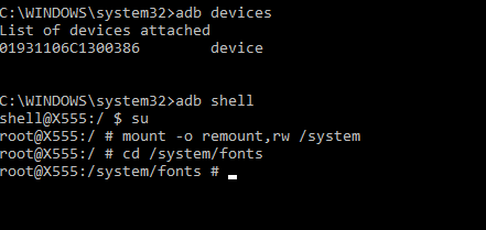 Now we’re ready to replace it with your custom font. Type into the ADB terminal: