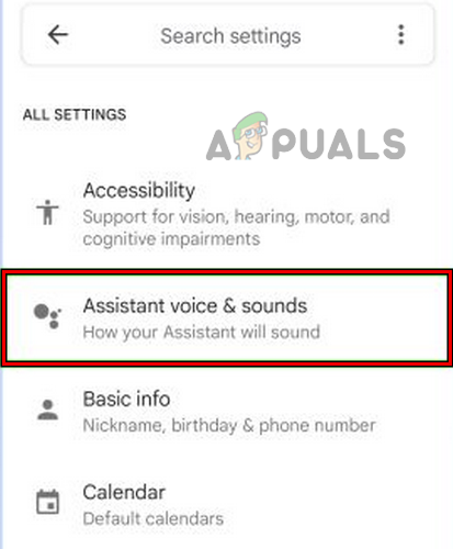3. Then, in the All Settings section, open Assistant Voice & Sounds. Open Assistant Voice & Sounds in the Google App Settings