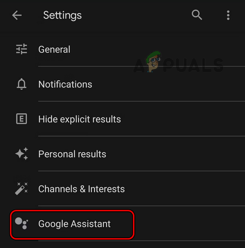 2. Now select Settings and tap on Google Assistant. Open Google Assistant in Google App Settings