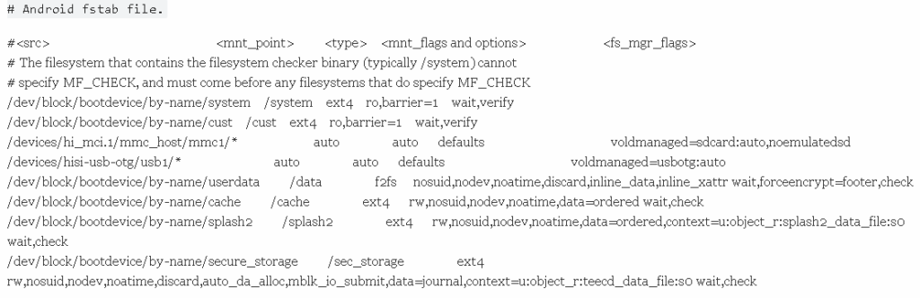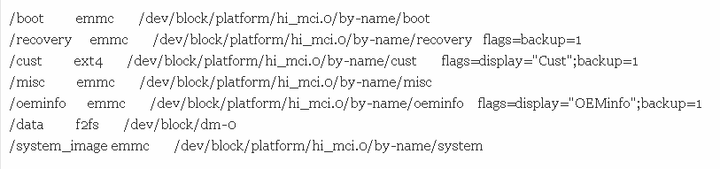 For example, a Huawei device might have this V2 fstab in the etc recovery.fstab: