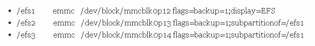 This lumps all 3 partitions into a single “EFS” entry in the TWRP GUI allowing all three to be backed up and restored together under a single entry.