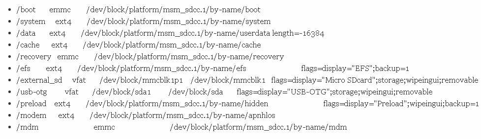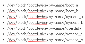 Note the dual boot, system and vendor partitions in the list above, but only one userdata partition.