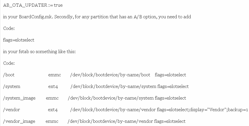 then make recoveryimage will no longer work and instead you will have to make bootimage. I don’t recommend setting either of these flags for TWRP-only build trees. These flags will probably be required for developers building full ROMs for A/B devices.