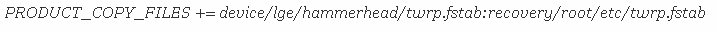 PRODUCT_COPY_FILES += device/lge/hammerhead/twrp.fstab:recovery>root>etc>twrp.fstab
