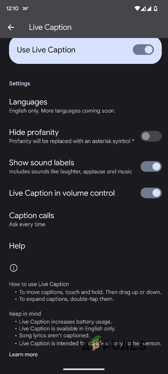 Keep in mind that Live Caption may not work properly for all apps. It works well for apps like YouTube and calling in general, but it may not be accurate for all audio content.