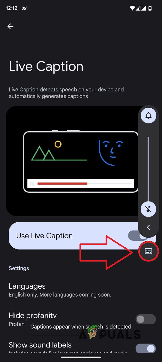 Live Caption will now be available for any audio that is playing on your device. To use Live Caption, simply press the volume button and tap on the Live Caption icon. The captions will initially appear towards the center of the screen, but if you prefer a different location, you can press and hold the caption box and move it to your preferred location.