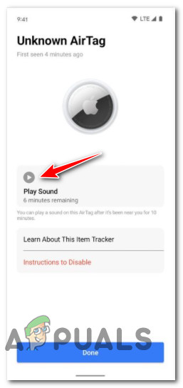 Note: To make sure the AirTag is not actually belonging to another user who happens to be located near you, wait for 10 minutes before playing the sound queue.