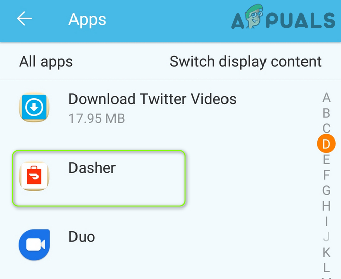 Open Apps in the Android Phone’s Settings - Find Dasher in the list and select Force Stop.