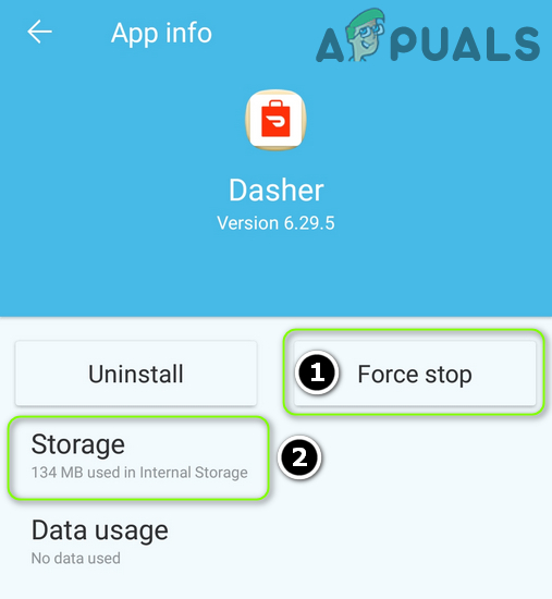 Clear Cache and Data of the Dasher App - Confirm the data clearance, then check if the app is now working correctly.