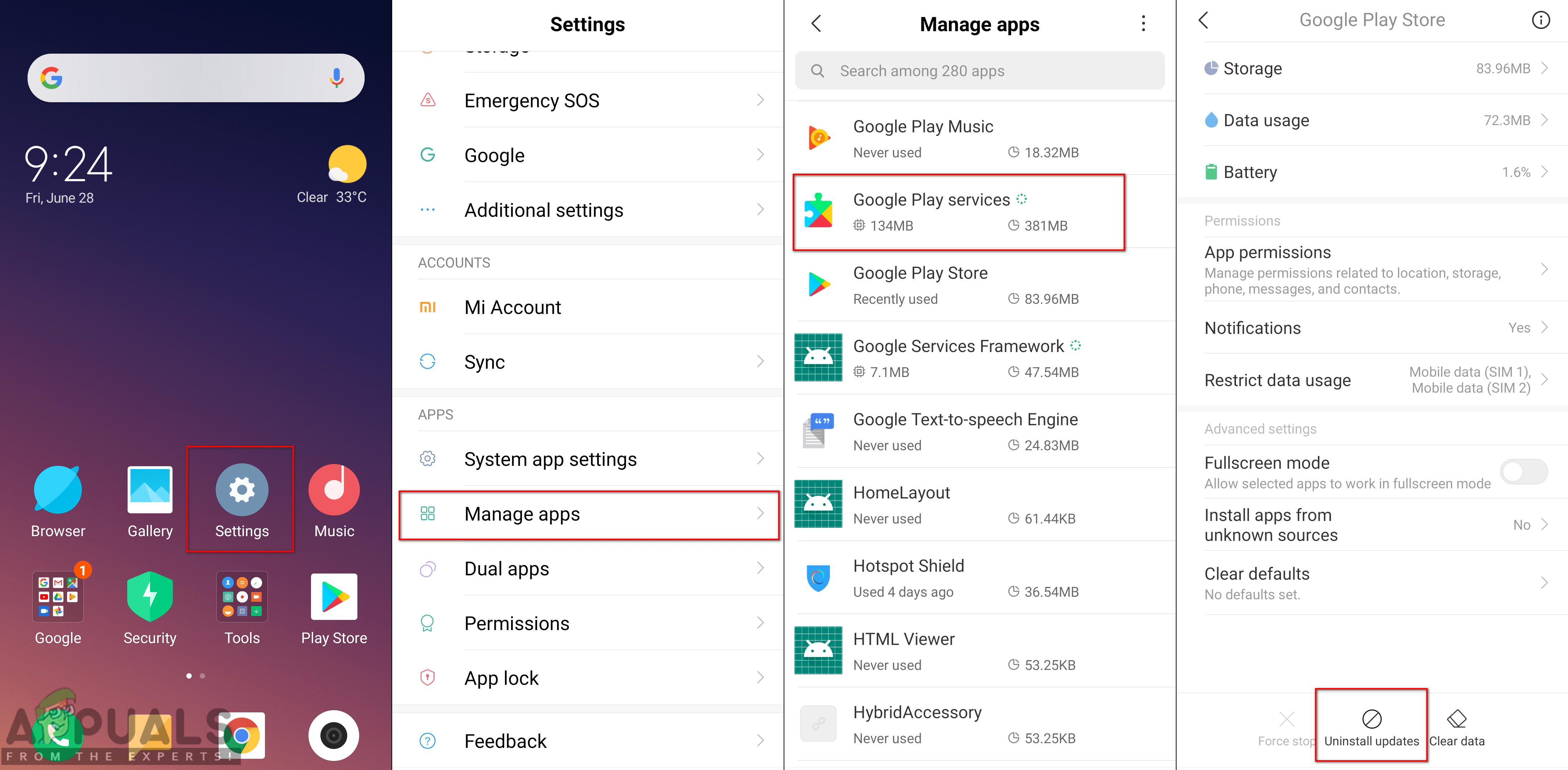 This issue can also trigger because of the latest updates of Google Play Store. Sometimes the new updates mess up with outdated files and cause the issue for users in downloading applications. You can check and fix this issue by uninstalling the Google Play Store app updates from settings of your phone by following the below steps: