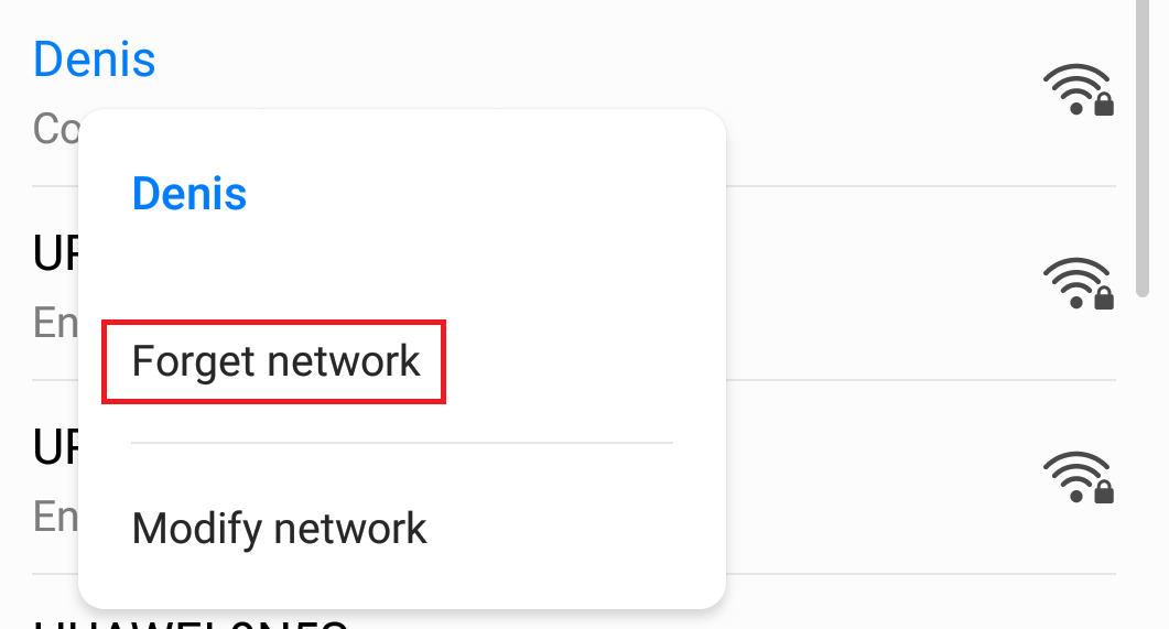 - Navigate to Settings > Wi-Fi, press and hold the network you’re connected to and select Forget (Forget Network).