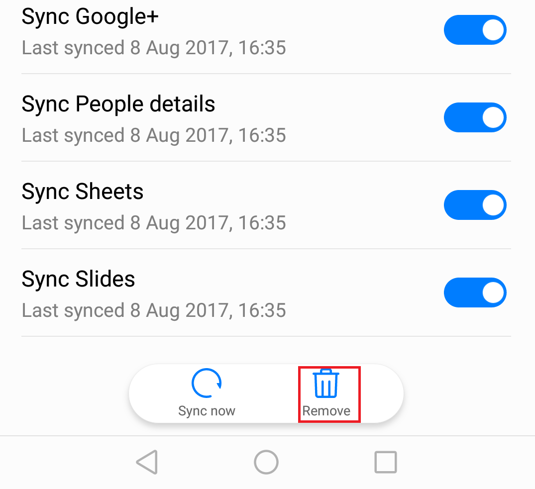 - Go to Settings > Accounts, select Google, tap on your account, and choose Remove.