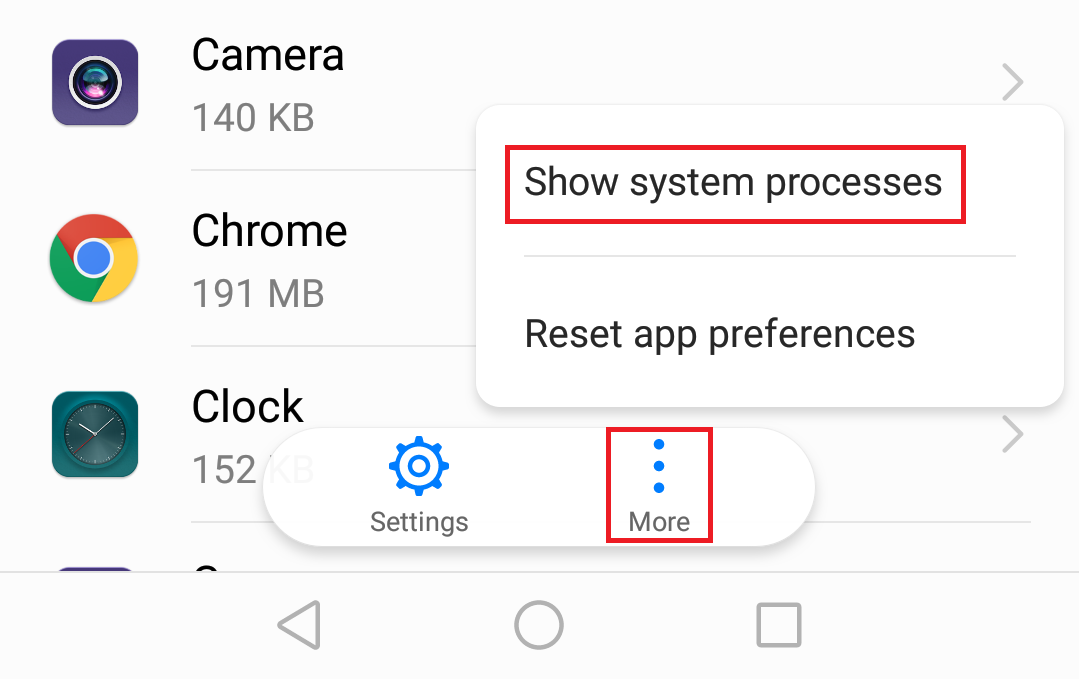 - Enter Settings and choose Application Manager. If it’s not visible, select the three-dot icon in Settings > Apps (Applications) and select Show System processes.