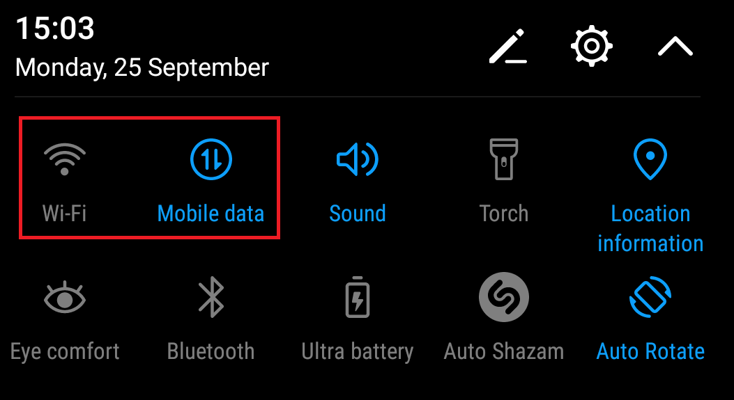 - Disable your Wi-Fi connection and enable Mobile Data.