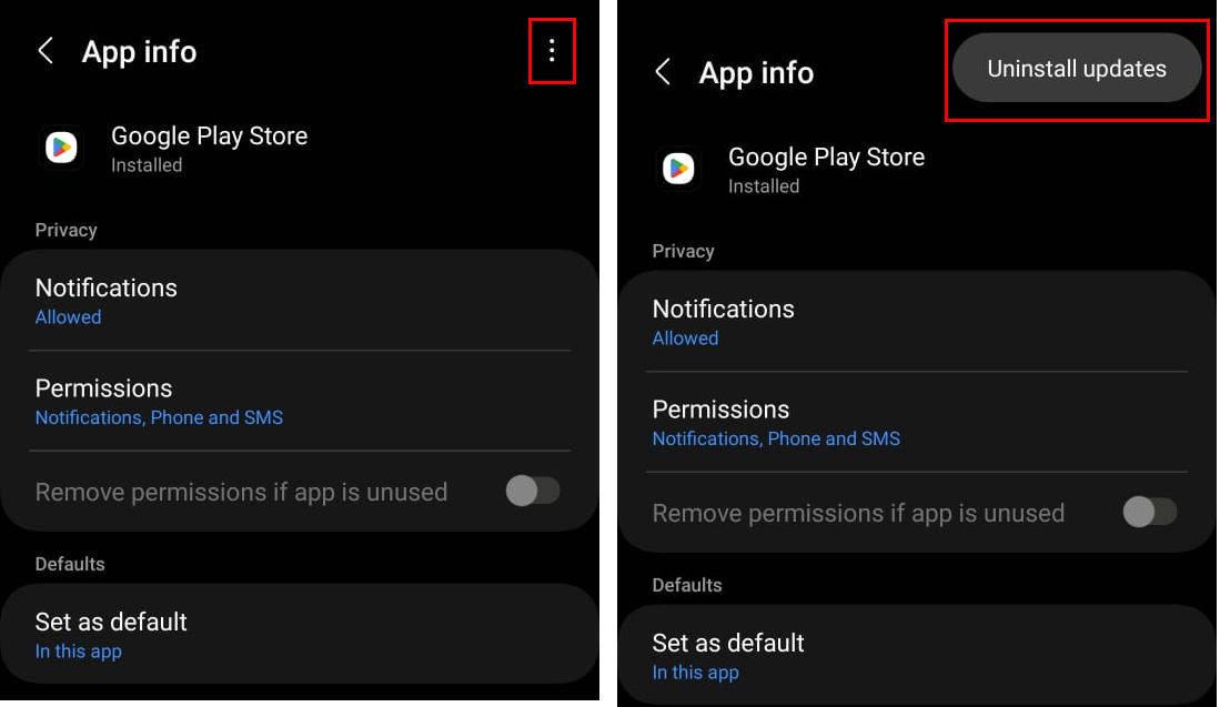 - Choose Uninstall Updates, restart your phone, and avoid updating the Play Store until you confirm the error is resolved.