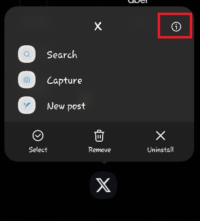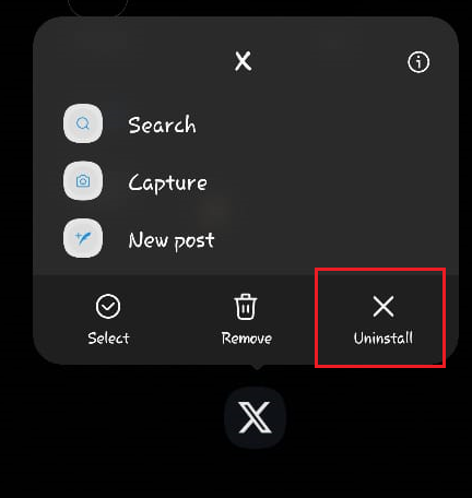 1. Long-press on the Twitter(X) icon and select Uninstall.
