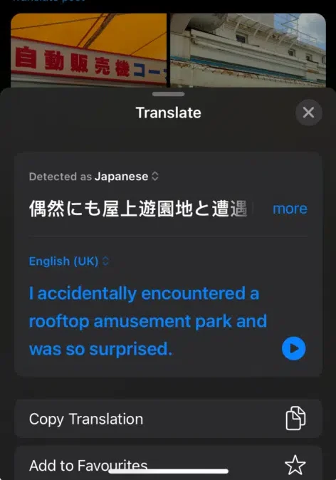 2. Select the text for translation, tap on the ‘>‘ icon in the options, and choose Translate.