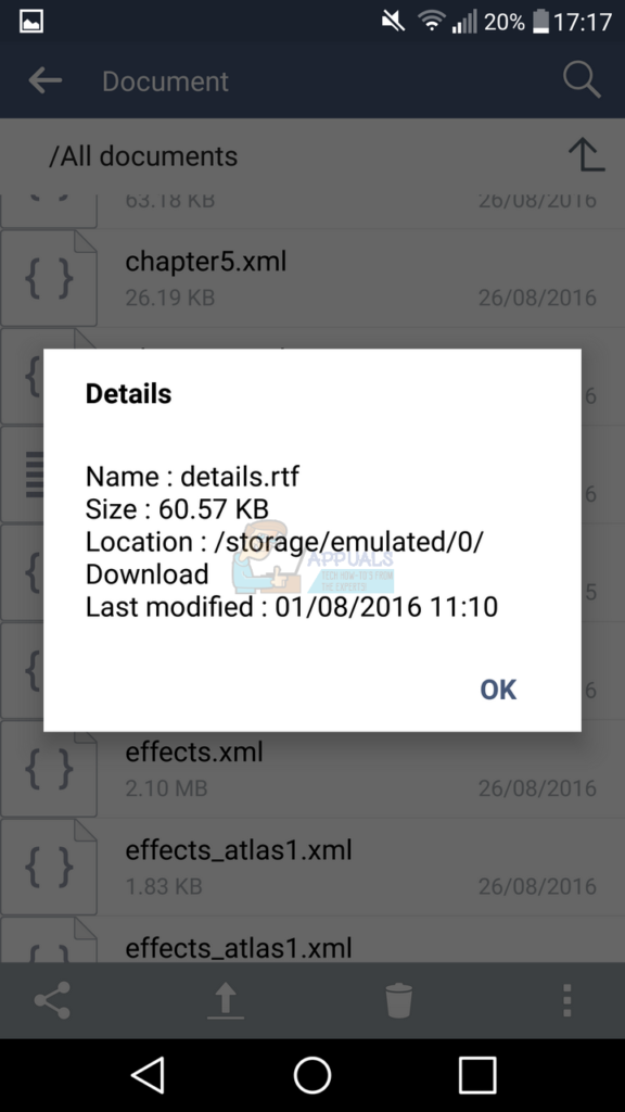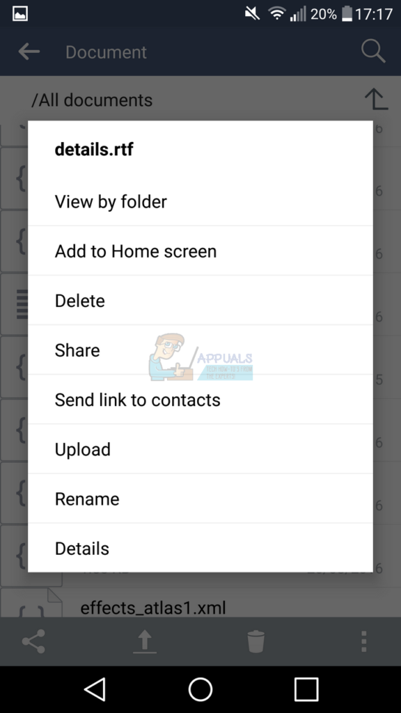 You’ll need to tap the option that says ‘details.’ On your device the option may be named something slightly different. Then, pay attention to the end of the file name. There should be a file extension following the name of the file. For example, it may say ‘filenamehere.rtf.’