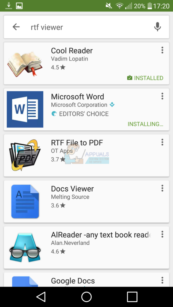 For the next step, you’ll need to copy the file extension name into the Google Play Store. In our case, we have searched for ‘rtf viewer’ into the Google Play search. In your case, you may need to search for something different.
