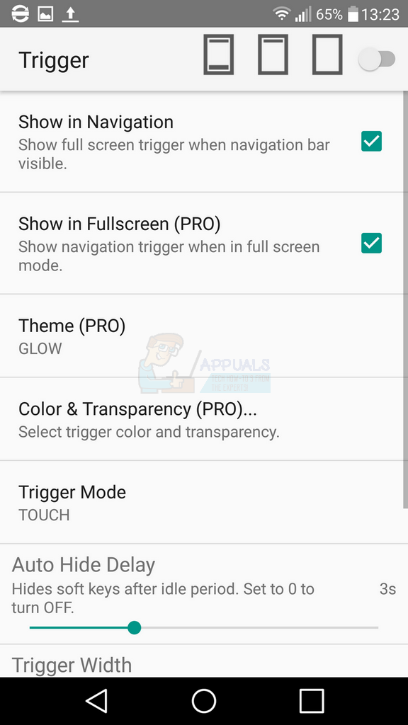 Some Android devices have on-screen buttons for home, back and recent apps, as opposed to physical buttons. By default, you cannot hide the on-screen buttons on Android but you can make a few changes to your device so that the buttons can be hidden on command.