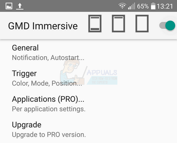 If you want to disable the app temporarily, you can do so by tapping the word ‘Immersive’ in your notification panel. Once you have done this, you’ll be taken to the main application menu.
