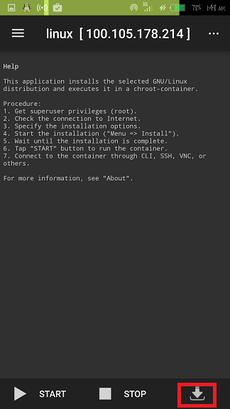 You should set your username to “root” – this will give you permanent super-user access inside the Linux distro. When everything has been configured, press the Install button, and after it’s finished, you may launch the Linux distro with the Start button – but this will launch it in chroot, which is like a command-line terminal. So we need to access the GUI using the VNC Viewer tool.