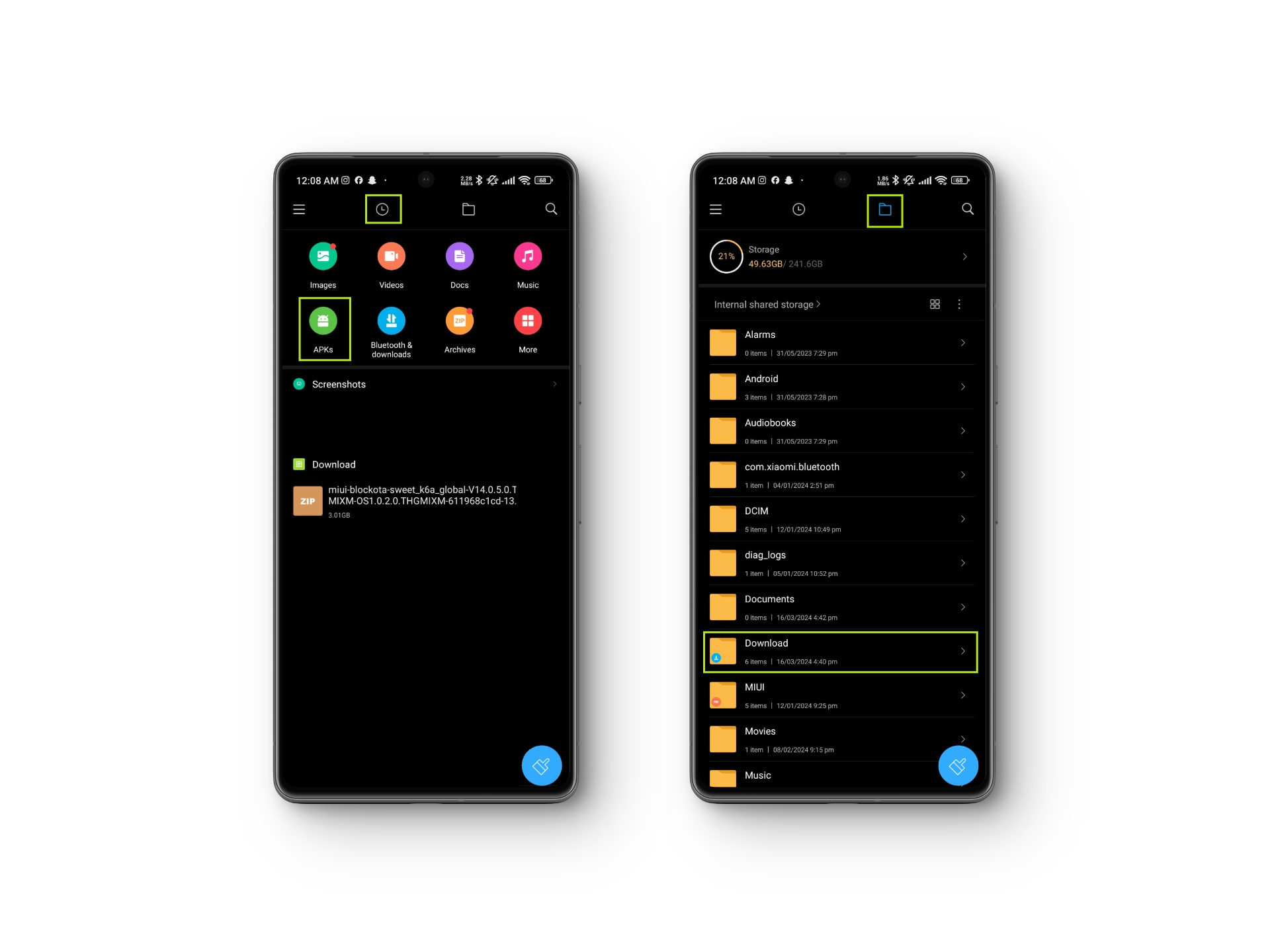 All your downloaded files are stored in the File Manager app on your phone. You can find the downloaded apk file by tapping on APKs in the Recents tab or by navigating to the Downloads folder under the Folders tab.