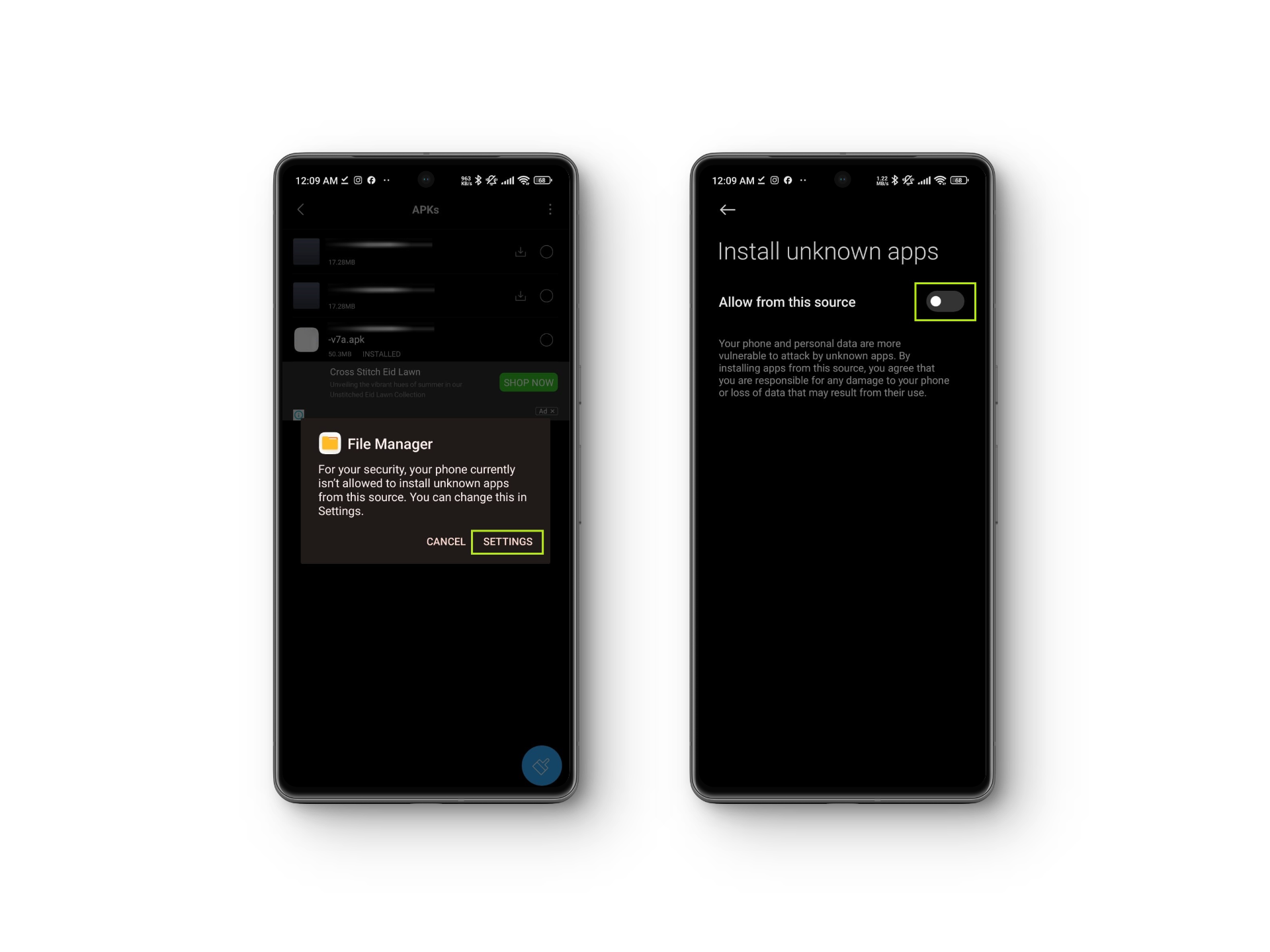 When you tap on the APK file, your device will prompt you to navigate to Settings and grant the necessary permissions. Tap on Settings and toggle on Allow from this source.