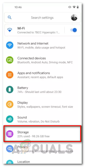 - First of all, open up the Settings app and then tap on Storage.