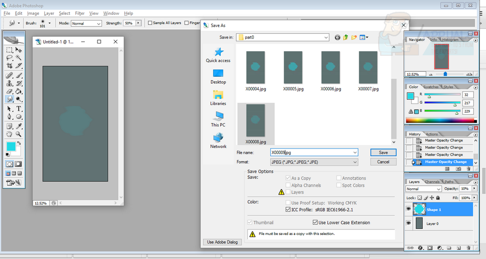 Each time you make an adjustment to your image for your resolution, you must save it. Because our animation is quite simple, we only required nine different images. You must save the images in numerical order in the part0 folder we created earlier. An example would be X00001.jpg, X00002.jpg, X00003.jpg and so on.